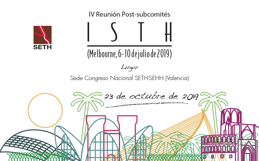 International Society on Thrombosis and Haemostasis (ISTH), en colaboración con la Sociedad Española de Trombosis y Hemostasia (SETH), organiza la "IV Reunión Post-Subcomités" que se celebrará durante el Congreso Nacional de Hematología el 23 de octubre de 2019.