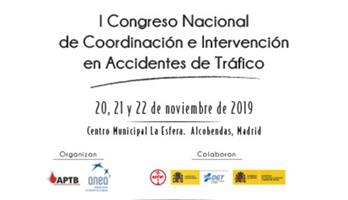 La Asociación Nacional de Empresarios de Ambulancias (ANEA) y la Asociación de Profesionales y Técnicos de Bomberos (APTB) organizan el I Congreso Nacional de Coordinación e Intervención en Accidentes de Tráfico, que se celebrará los días 20, 21 y 22 de noviembre de 2019 en el Centro Municipal La Esfera de Alcobendas, Madrid.