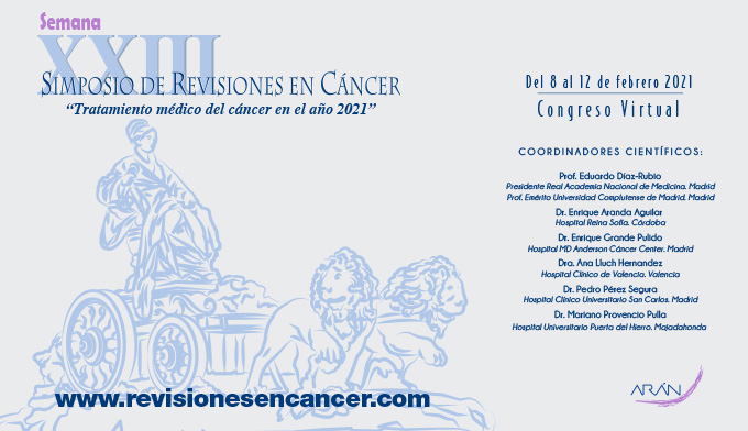 Un año más los mejores oncólogos de nuestro país se dan cita en este encuentro imprescindible de la Oncología Médica coordinados por un ejemplar equipo de profesionales como son: Eduardo Díaz-Rubio (Prof. Emérito. Universidad Complutense de Madrid), Enrique Aranda (Hospital Reina Sofia. Córdoba), Enrique Grande (Hospital MD Anderson Cáncer Center. Madrid), Ana Lluch (Hospital Clínico de Valencia. Valencia), Pedro Pérez (Hospital Clínico Universitario San Carlos. Madrid) y Mariano Provencio (Hospital Universitario Puerta del Hierro. Madrid).