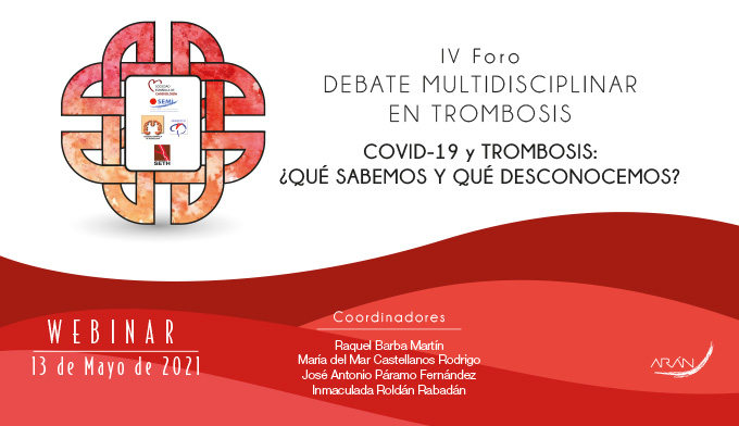 El próximo 13 de mayo de 2021 se celebrará el WEBINAR del IV FORO DE DEBATE MULTIDISCIPLINAR EN TROMBOSIS "COVID-19 y TROMBOSIS: