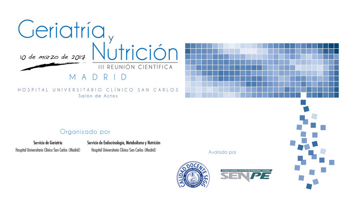 En 2017 se celebrará la III Reunión Científica de Geriatría y Nutrición que organiza el  Servicio de Geriatría y el Servicio de Endocrinología y Nutrición del Hospital Clínico Universitario San Carlos de Madrid avalado por SEGG y SENPE.