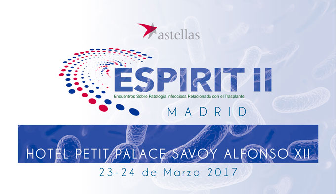 Los próximos 23 y 24 de marzo de 2017, se celebrará en el Hotel Petit Palace Alfonso XII la Reunión ESPIRIT II. Un proyecto docente con el que se pretende que sirva como soporte para la enseñanza práctica de la patología infecciosa del paciente trasplantado.