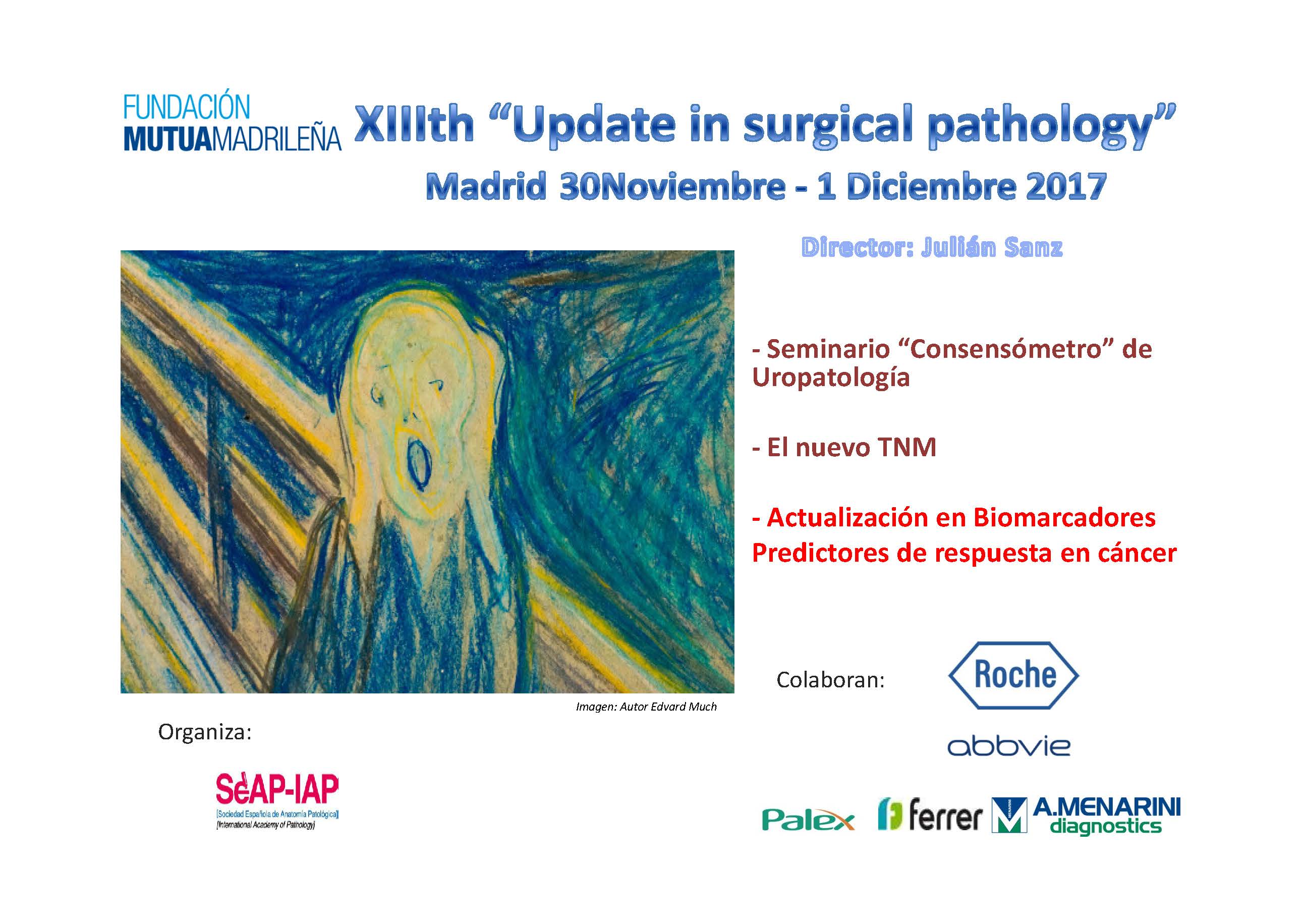 Grupo Arán organiza el próximo XIIIth 'Update in surgical pathology' que se celebrará los días 30 de noviembre y 1 de diciembre de 2017 en el Auditorio de la Fundación Mutua Madrileña (Calle Eduardo Dato, 20).