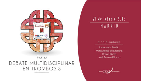 El próximo21 de febrero de 2018 se celebrará el FORO DE DEBATE MULTIDISCIPLINAR EN TROMBOSIS en el Hospital La Paz de Madrid, coordinado por la Sociedad Española de Trombosis y Hemostasia (SETH), la Sociedad Española de Cardiología, la Sociedad Española de Neurologia (SEN), Grupo de Estudio de Enfermedades Cerebrovasculares (GEECV)  y la Sociedad Española de Medicina Interna (SEMI)